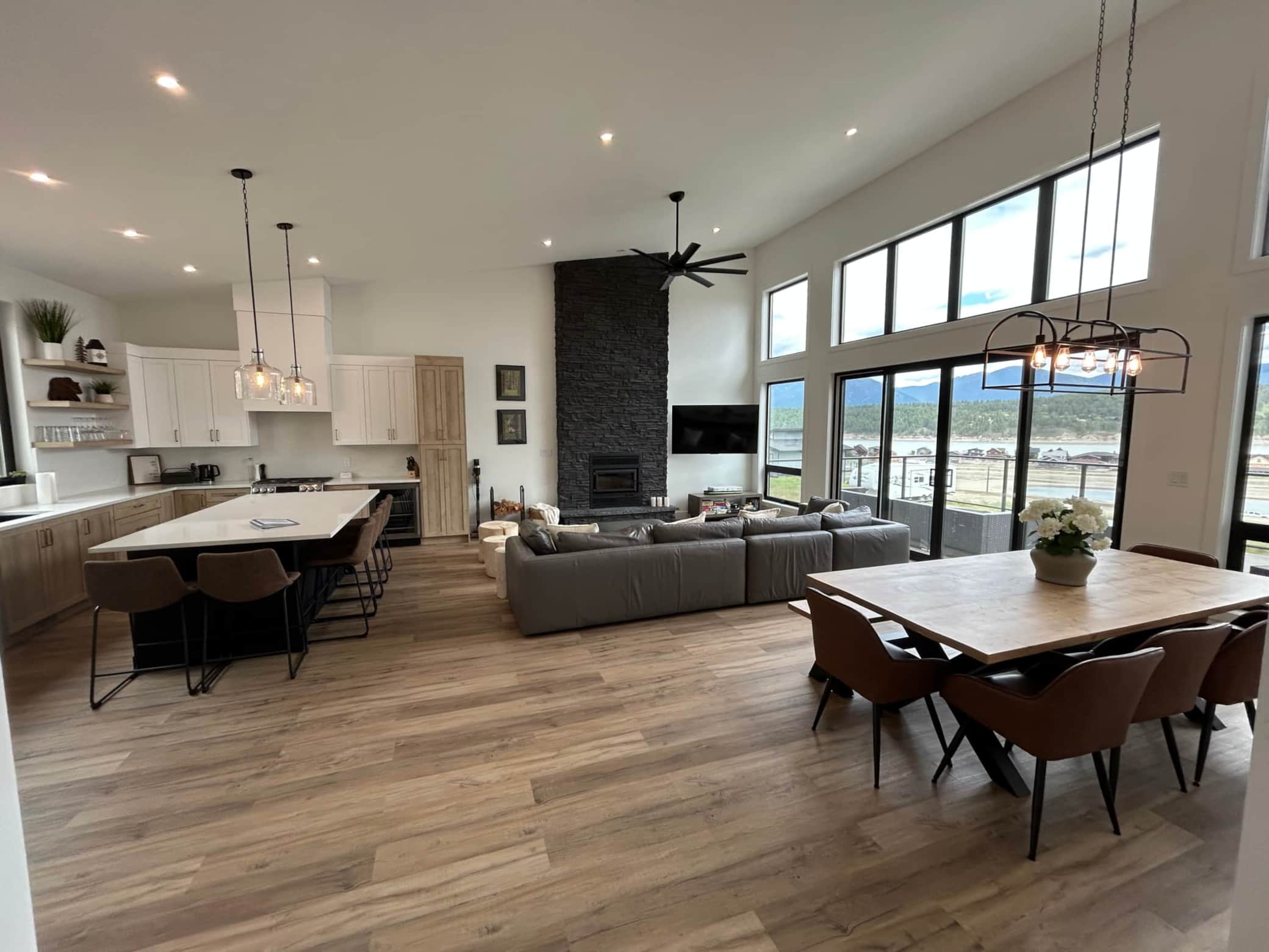 Its our pleasure to share our home with others! This large 2,100 sq ft home features 4 rooms that can sleep 10 comfortably. The large great room with 16 feet ceilings opens to a large front deck with mountain lake views. Interior wood fireplace for cozying up on cold nights makes this a complete special retreat.